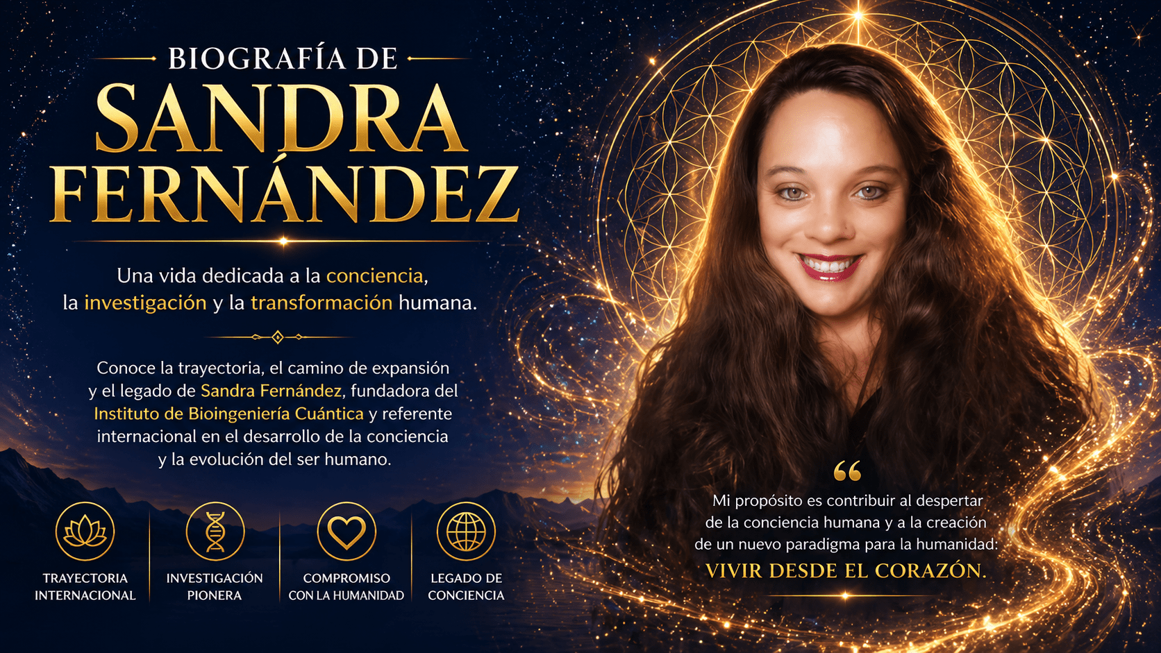 Hoy, Sandra Fernández continúa expandiendo su trabajo a nivel internacional, guiando procesos de transformación profunda y liderando el desarrollo de una nueva visión del ser humano orientada a la integración entre ciencia, conciencia y evolución espiritual.