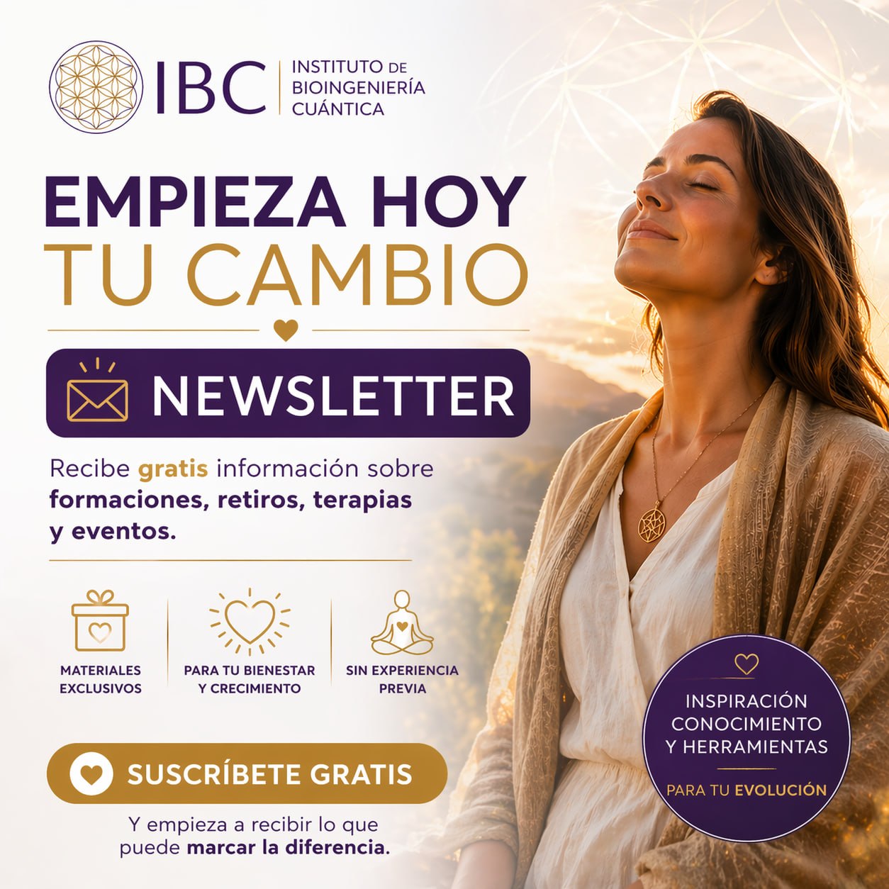 Suscríbete gratis y recibe antes que nadie nuestras formaciones, retiros, terapias y eventos del Instituto de Bioingeniería Cuántica.